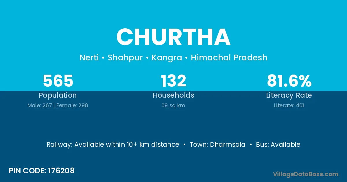 Dharmsala is the nearest town to Churtha village for major economic activities