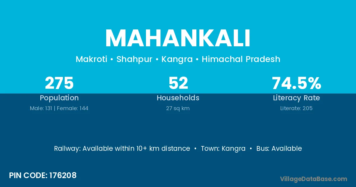 Kangra is the nearest town to Mahankali village for major economic activities