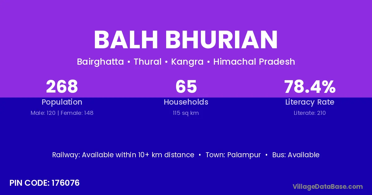 Palampur is the nearest town to Balh Bhurian village for major economic activities