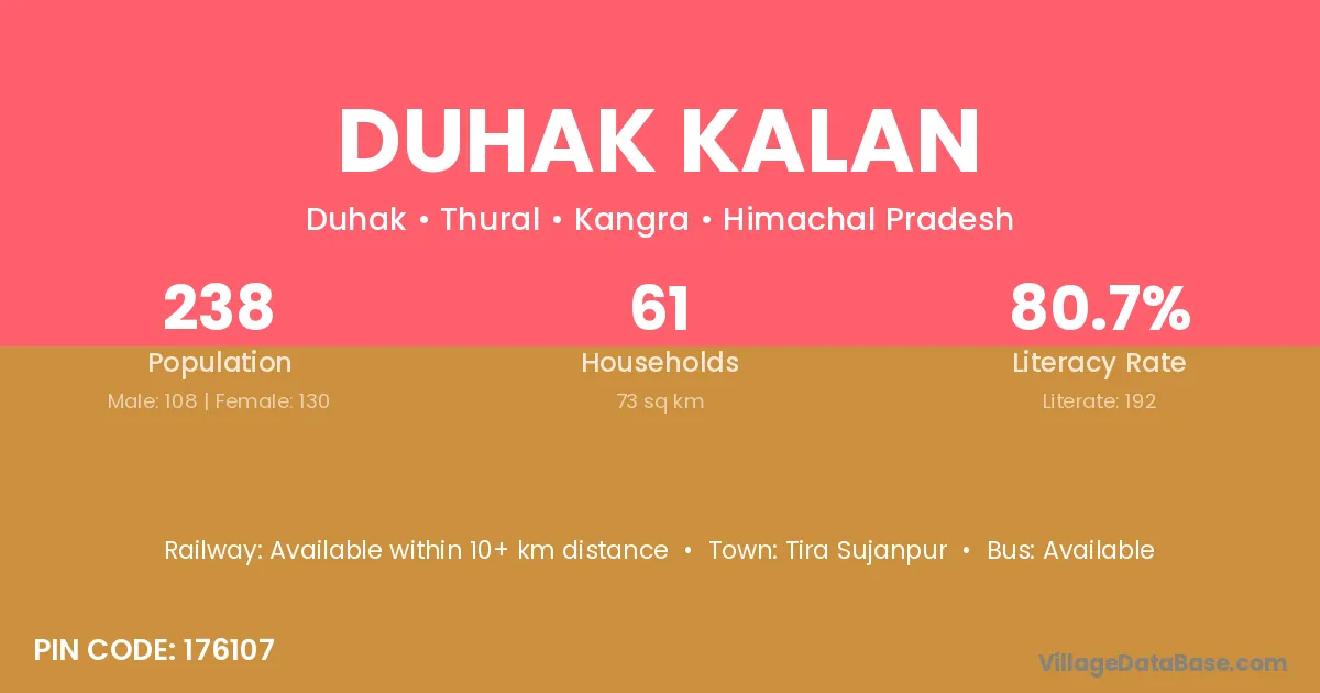 Tira Sujanpur is the nearest town to Duhak Kalan village for major economic activities