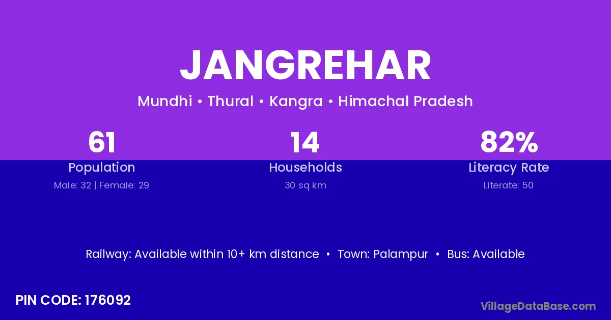 Palampur is the nearest town to Jangrehar village for major economic activities