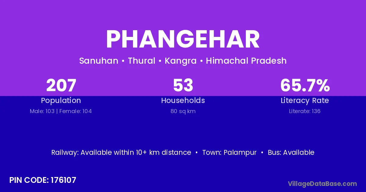 Palampur is the nearest town to Phangehar village for major economic activities