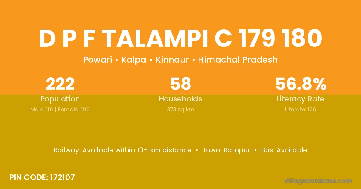 D P F Talampi C 179 180 village has a total population of 222 people, of which 116 are males and 106 are females.
