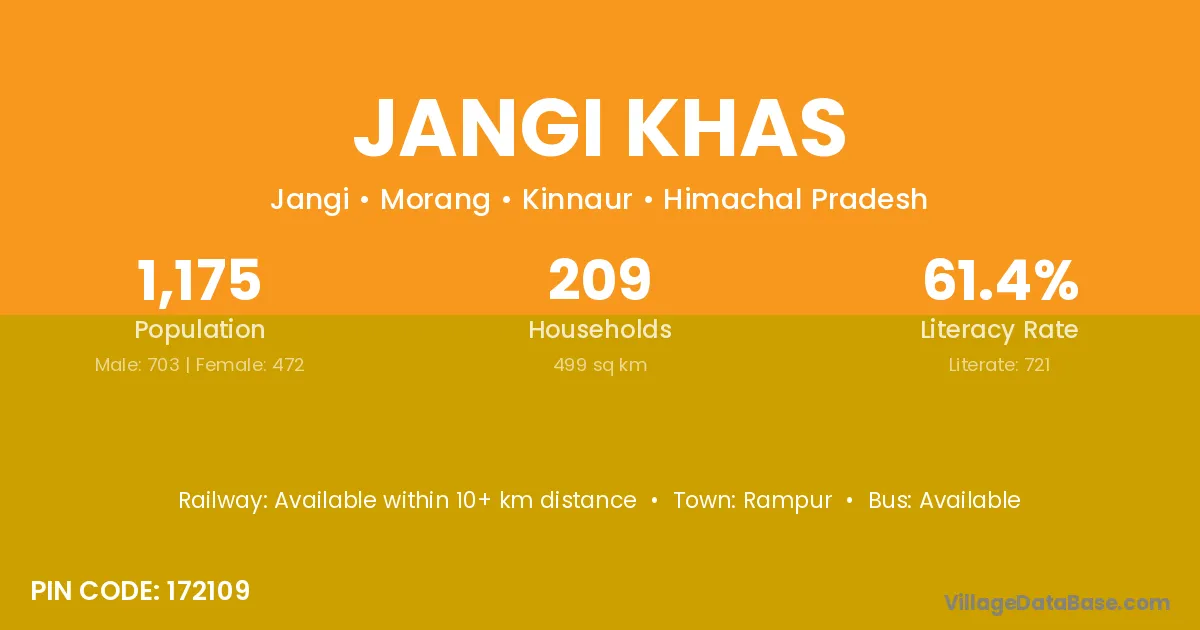 Jangi Khas village has a total population of 1,175 people, of which 703 are males and 472 are females.