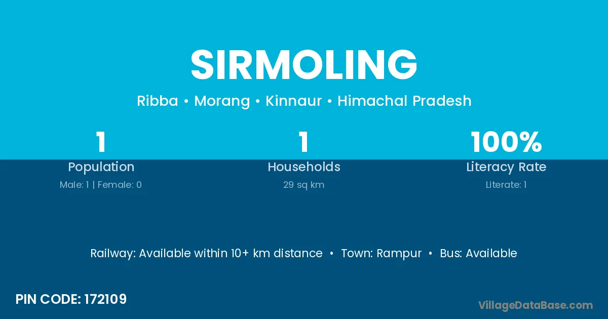 Rampur is the nearest town to Sirmoling village for major economic activities