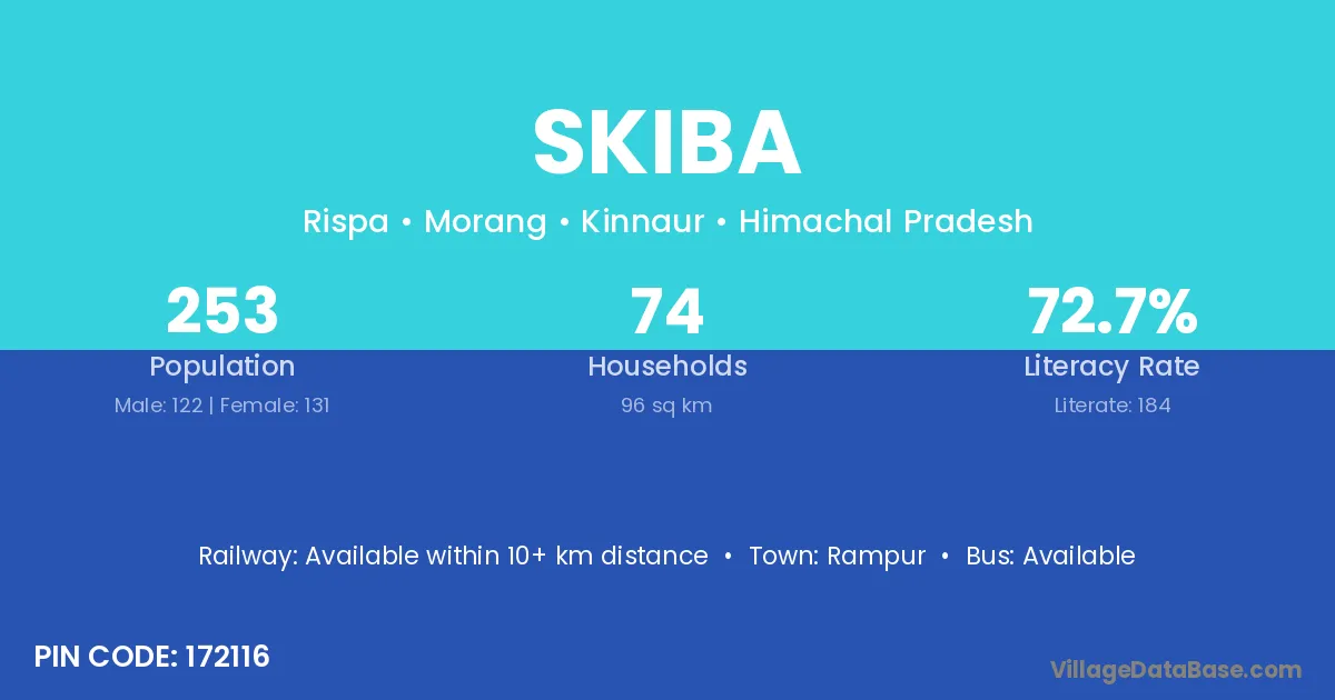 Skiba village has a total population of 253 people, of which 122 are males and 131 are females.