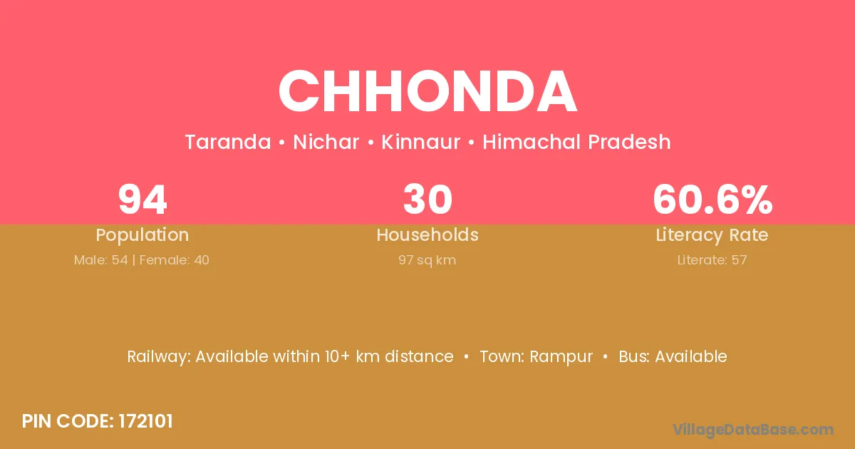 Chhonda village is located in the Nichar Tehsil of the Kinnaur district in Himachal Pradesh .