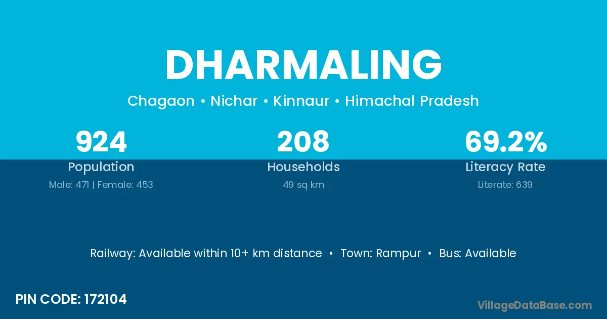 Dharmaling village has a total population of 924 people, of which 471 are males and 453 are females.