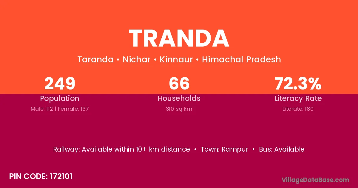 Tranda village has a total population of 249 people, of which 112 are males and 137 are females.