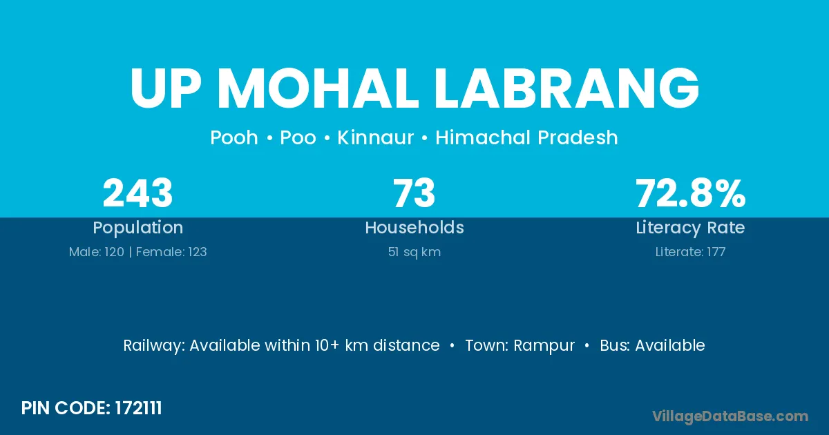 Up Mohal Labrang village has a total population of 243 people, of which 120 are males and 123 are females.