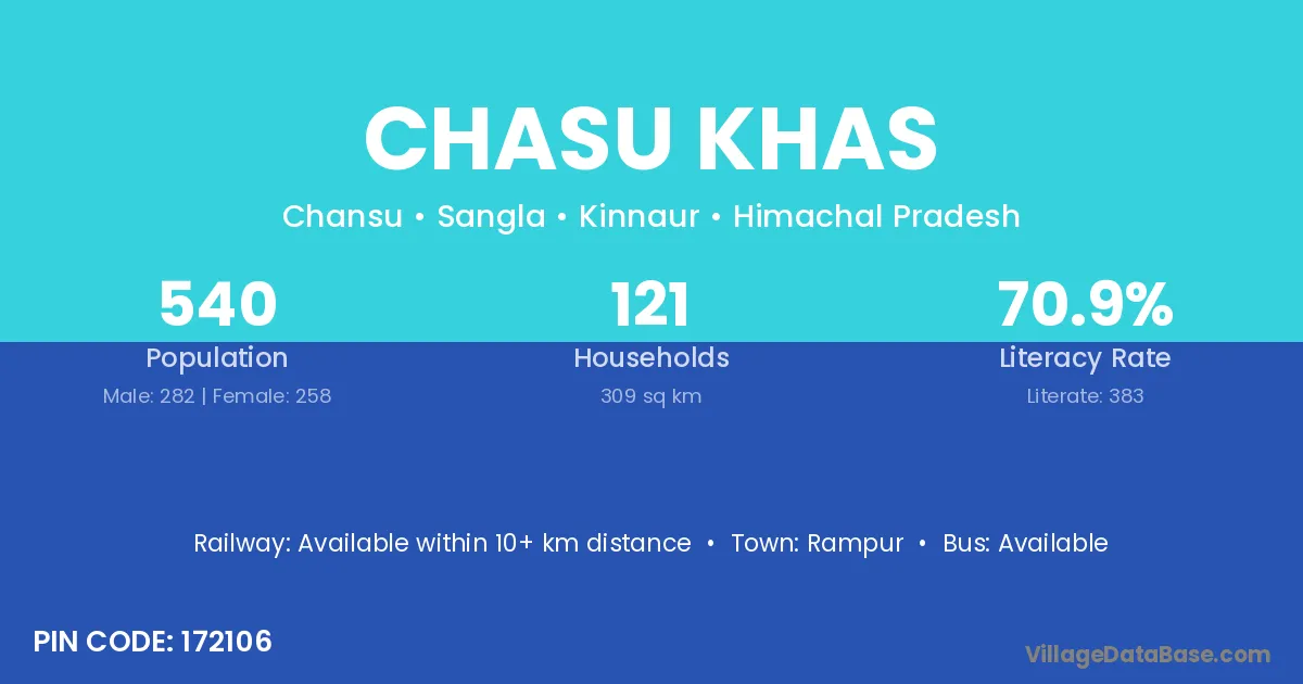 Chasu Khas village is located in the Sangla Tehsil of the Kinnaur district in Himachal Pradesh .