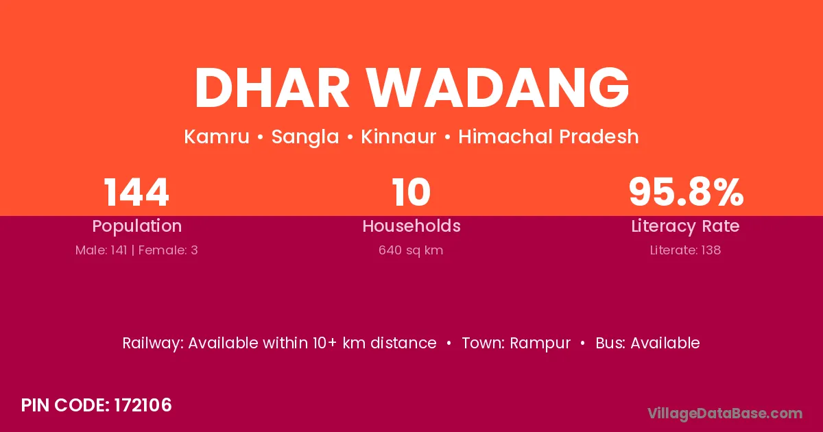 Dhar Wadang village is located in the Sangla Tehsil of the Kinnaur district in Himachal Pradesh .