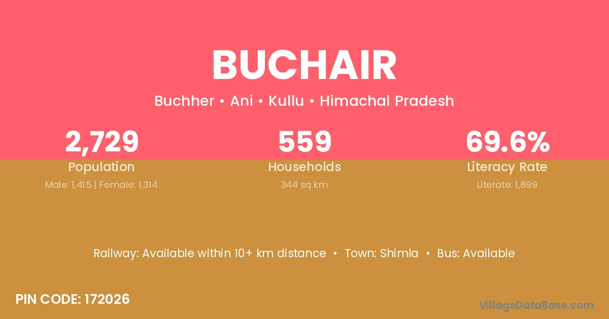 Buchair village is located in the Ani Tehsil of the Kullu district in Himachal Pradesh .