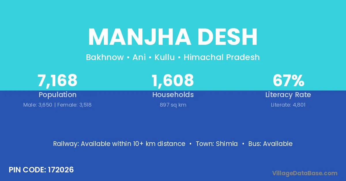 Shimla is the nearest town to Manjha Desh village for major economic activities