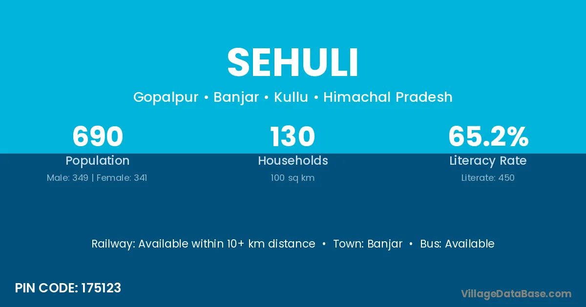 Sehuli village is located in the Banjar Tehsil of the Kullu district in Himachal Pradesh .