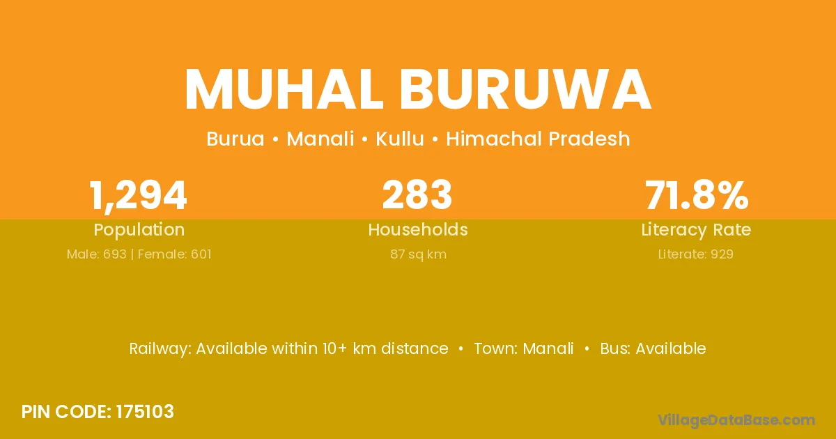 Manali is the nearest town to Muhal Buruwa village for major economic activities
