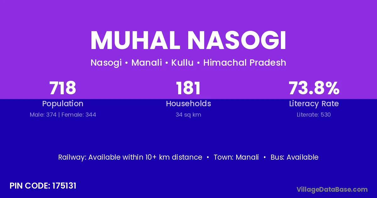 Manali is the nearest town to Muhal Nasogi village for major economic activities