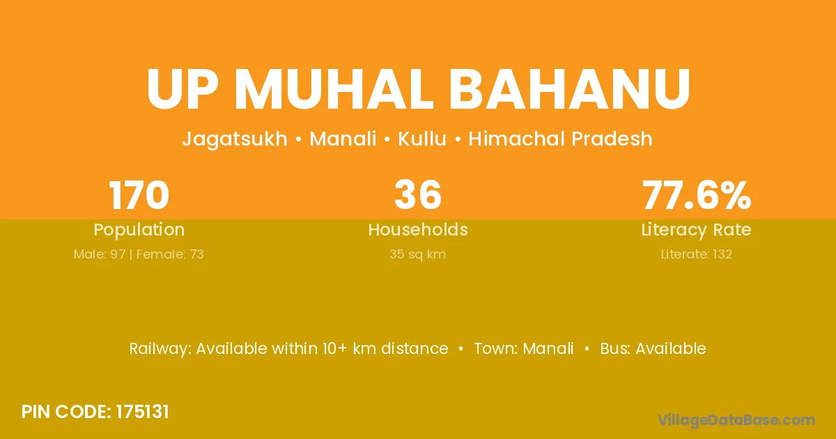 Manali is the nearest town to Up Muhal Bahanu village for major economic activities