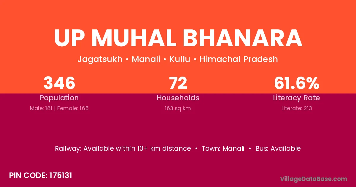Manali is the nearest town to Up Muhal Bhanara village for major economic activities