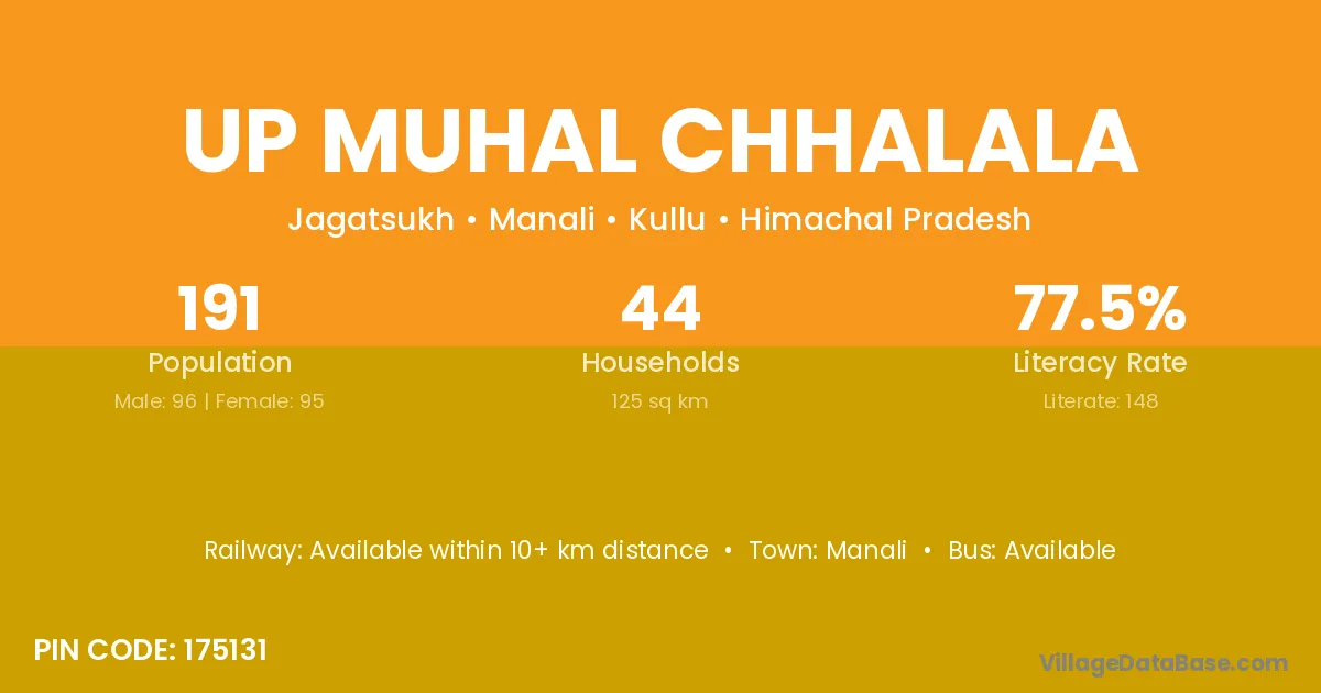 Up Muhal Chhalala village has a total population of 191 people, of which 96 are males and 95 are females.