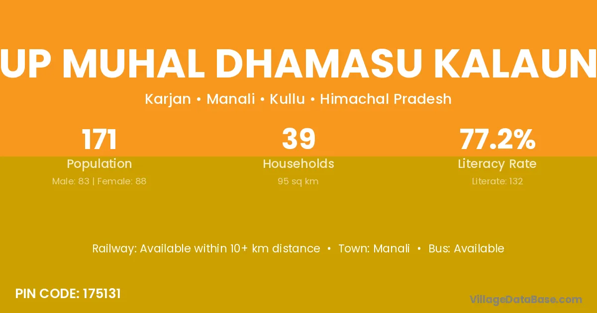 Manali is the nearest town to Up Muhal Dhamasu Kalaun village for major economic activities