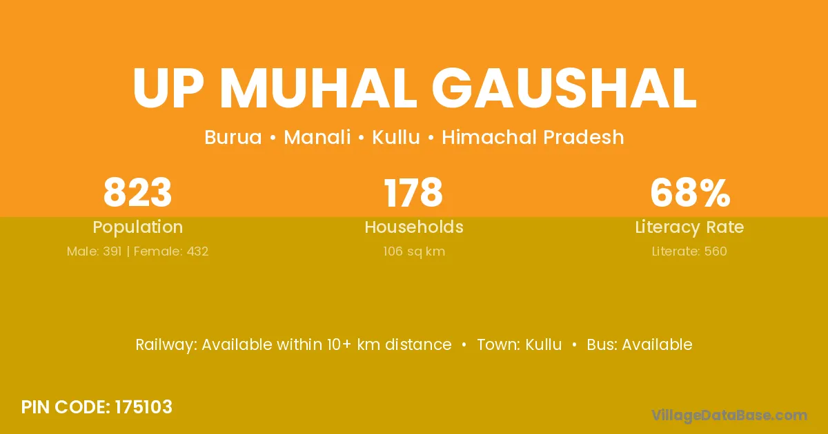 Kullu is the nearest town to Up Muhal Gaushal village for major economic activities