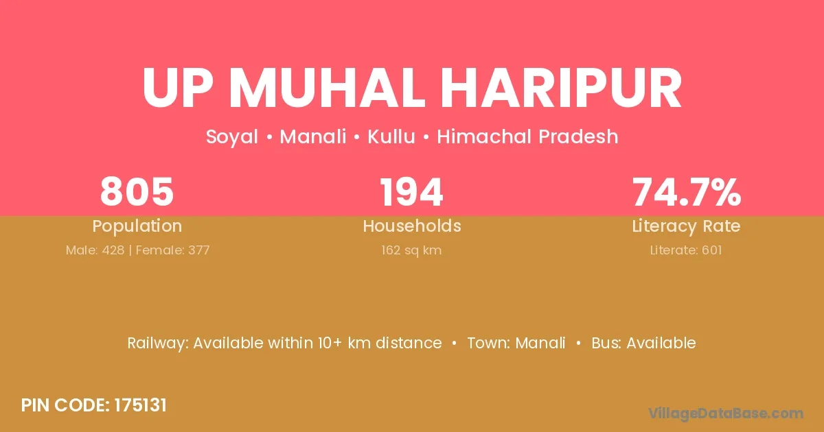 Manali is the nearest town to Up Muhal Haripur village for major economic activities
