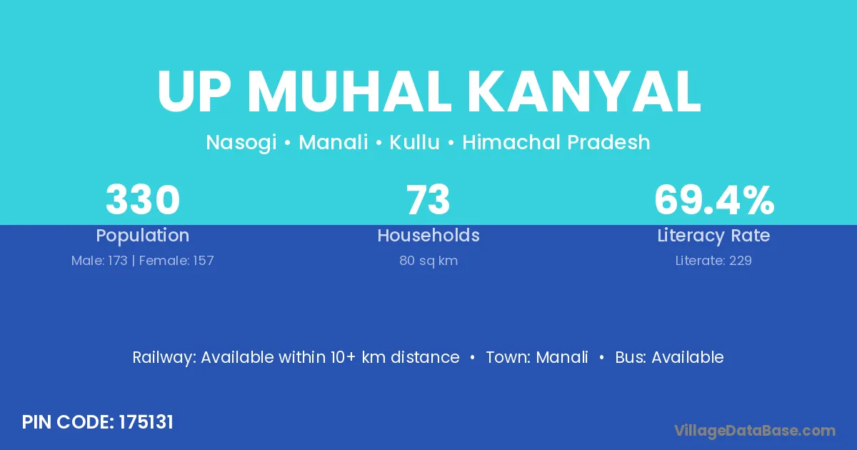 Up Muhal Kanyal village has a total population of 330 people, of which 173 are males and 157 are females.