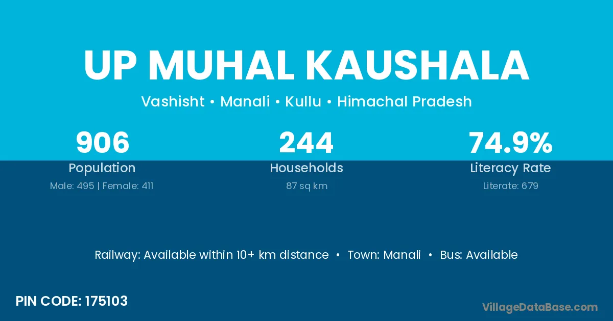Up Muhal Kaushala village is located in the Manali Tehsil of the Kullu district in Himachal Pradesh .