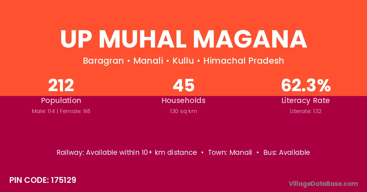 Up Muhal Magana village has a total population of 212 people, of which 114 are males and 98 are females.