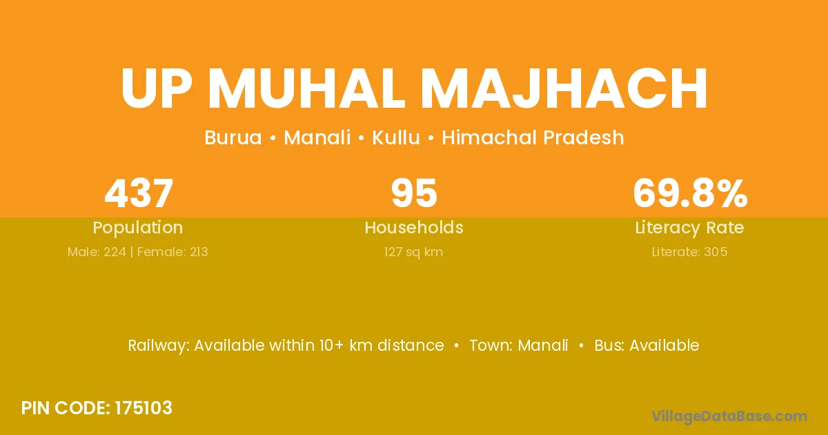 Manali is the nearest town to Up Muhal Majhach village for major economic activities