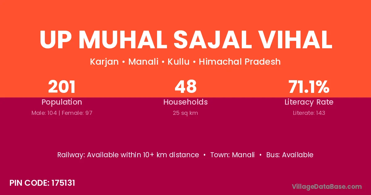 Up Muhal Sajal Vihal village is located in the Manali Tehsil of the Kullu district in Himachal Pradesh .