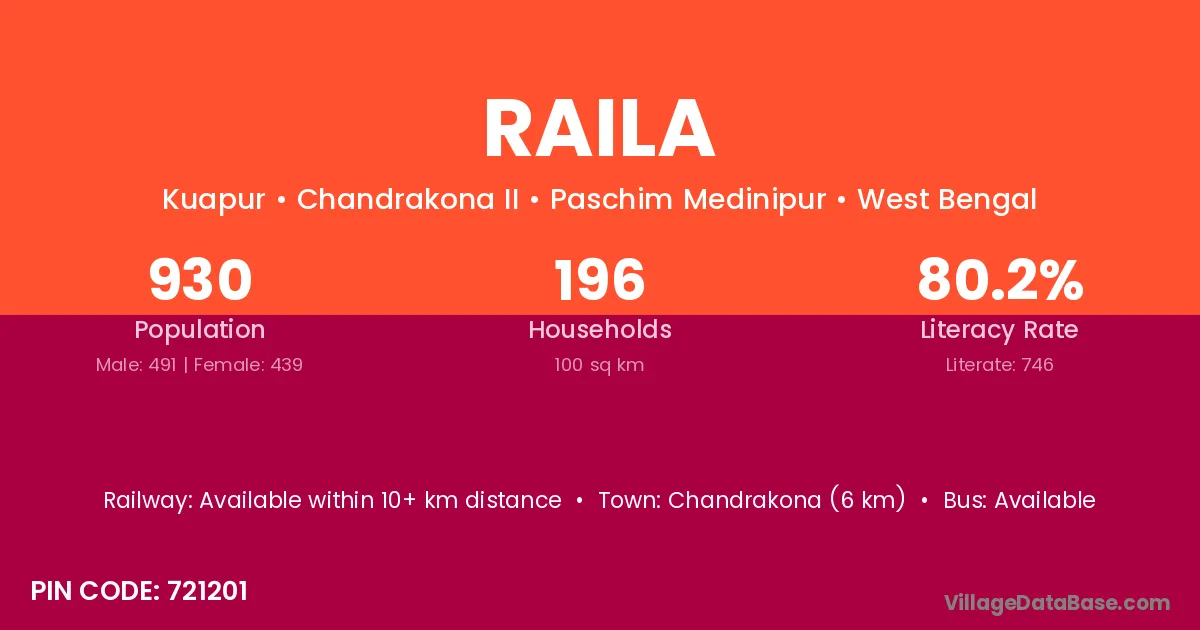 According to Census 2011 information, the village code of Raila village is 175134.