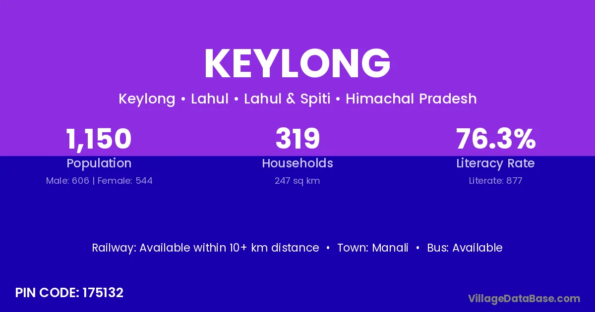 Keylong village has a total population of 1,150 people, of which 606 are males and 544 are females.