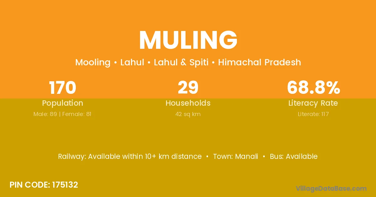 Muling village is located in the Lahul Tehsil of the Lahul & Spiti district in Himachal Pradesh .