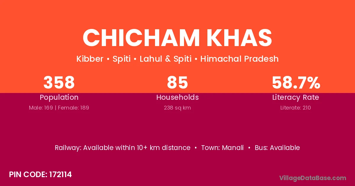 Manali is the nearest town to Chicham Khas village for major economic activities