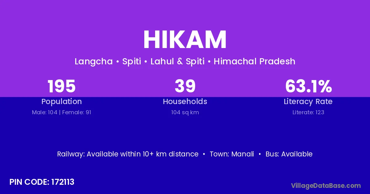 Manali is the nearest town to Hikam village for major economic activities