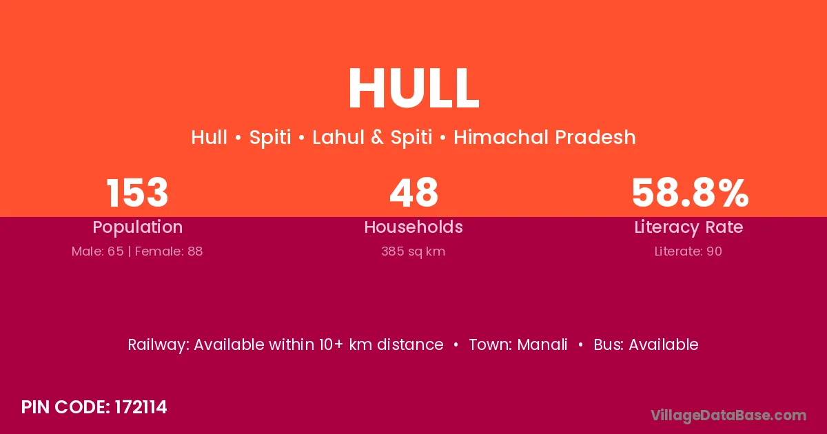 According to Census 2011 information, the village code of Hull village is 172114.