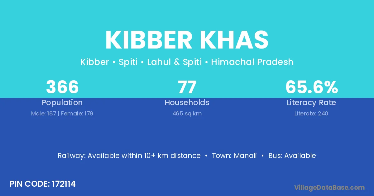 According to Census 2011 information, the village code of Kibber Khas village is 172114.