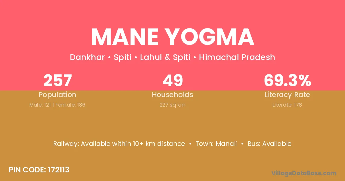 Manali is the nearest town to Mane Yogma village for major economic activities