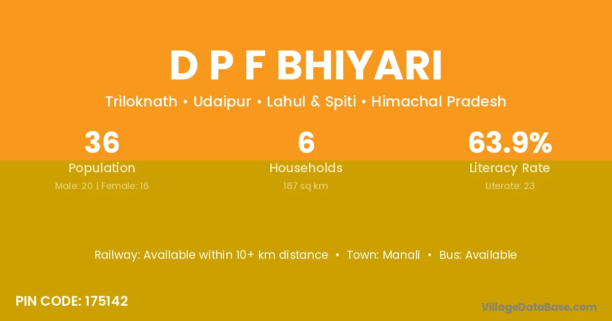 D P F Bhiyari village is located in the Udaipur Tehsil of the Lahul & Spiti district in Himachal Pradesh .