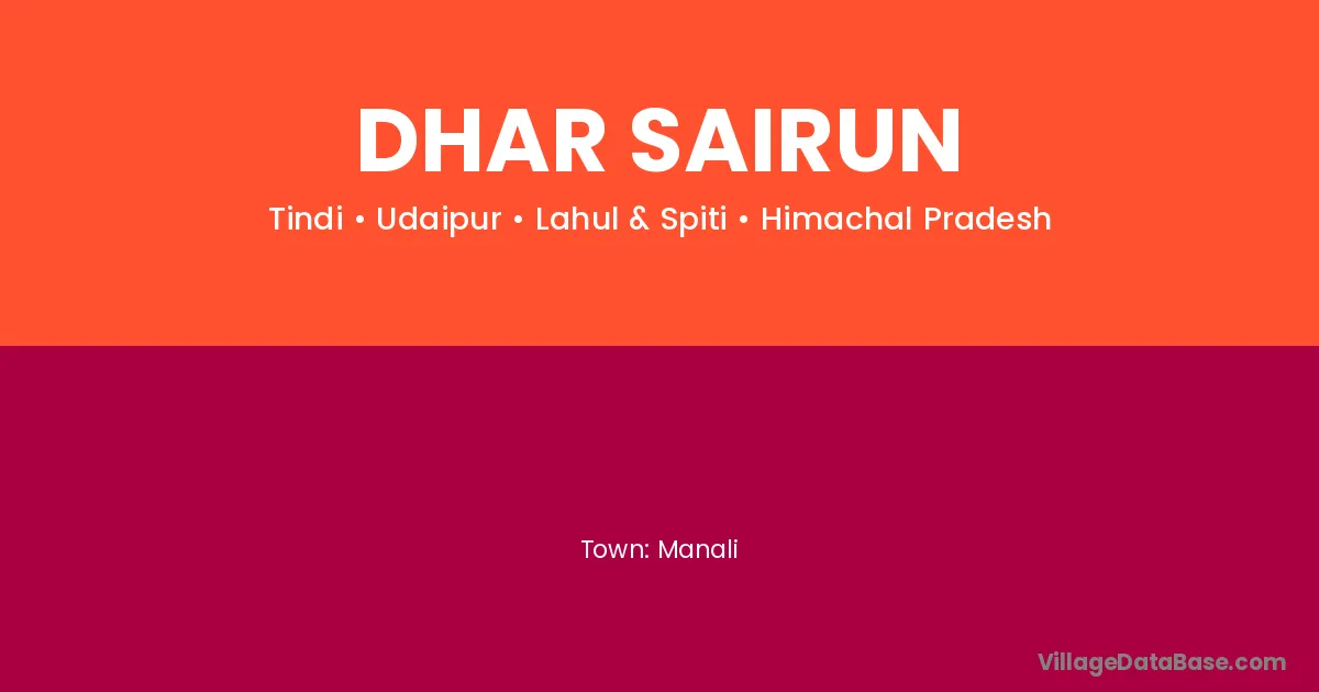 Manali is the nearest town to Dhar Sairun village for major economic activities