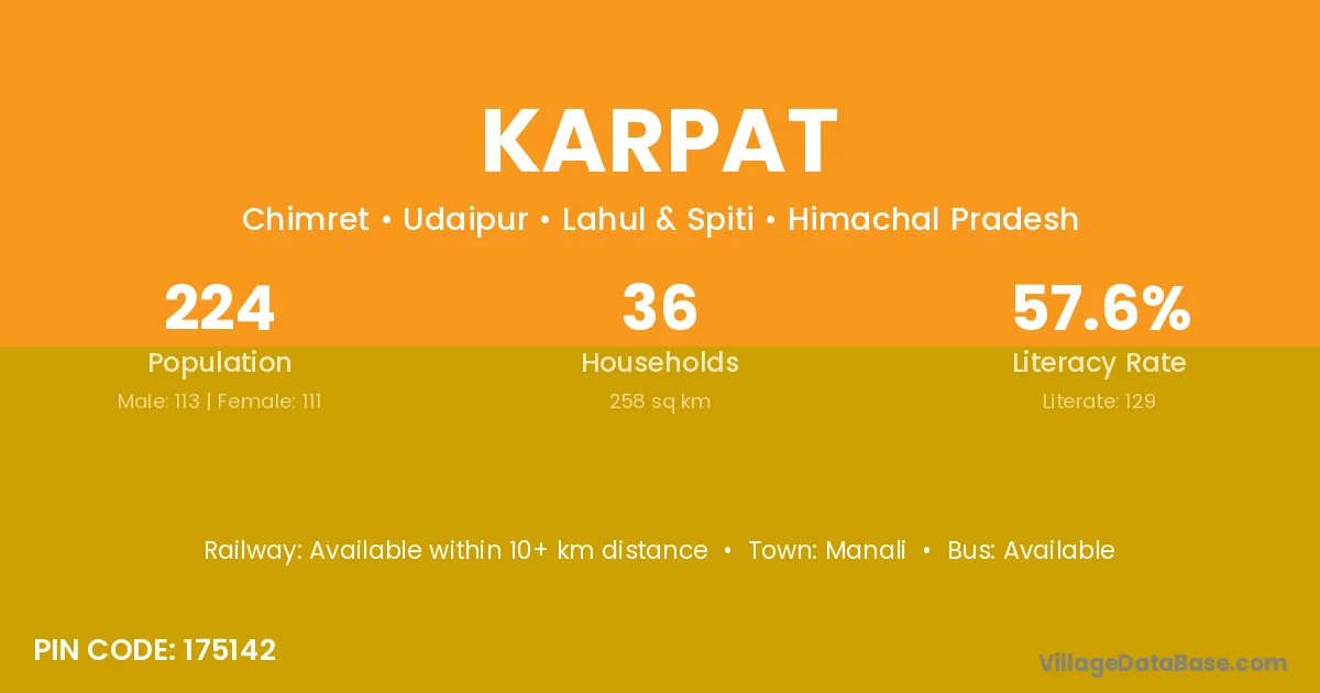 Manali is the nearest town to Karpat village for major economic activities
