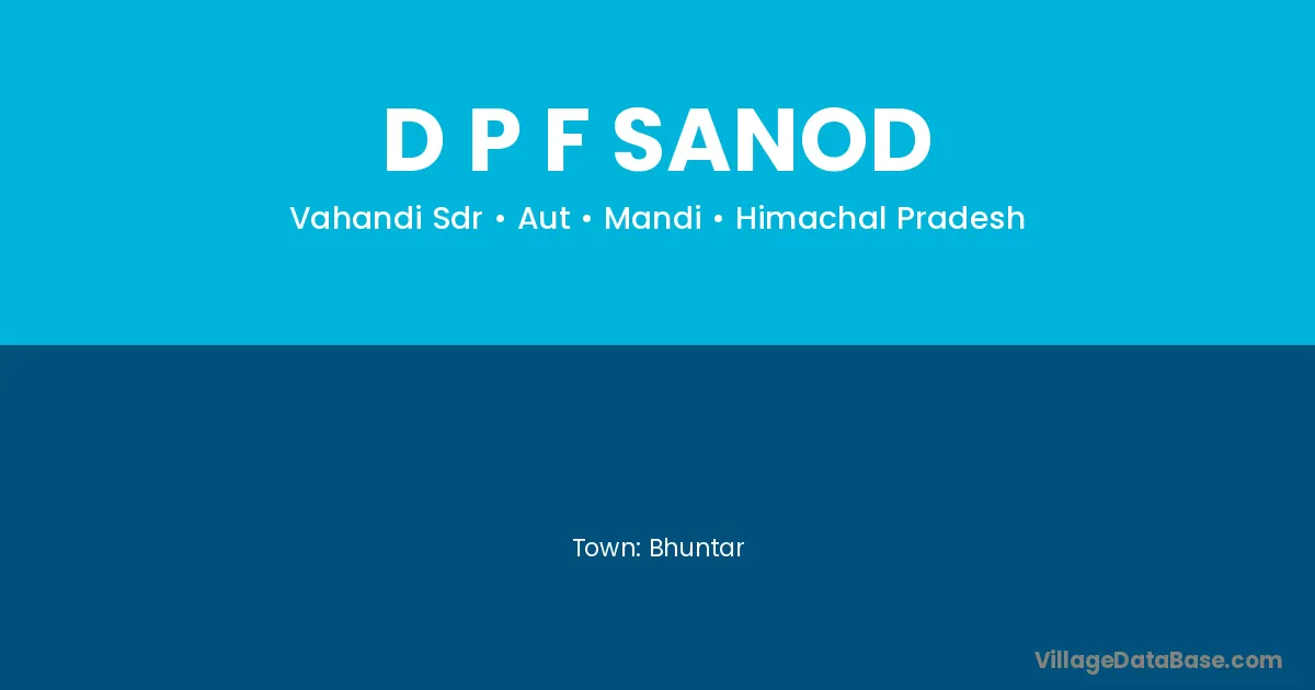 Bhuntar is the nearest town to D P F Sanod village for major economic activities