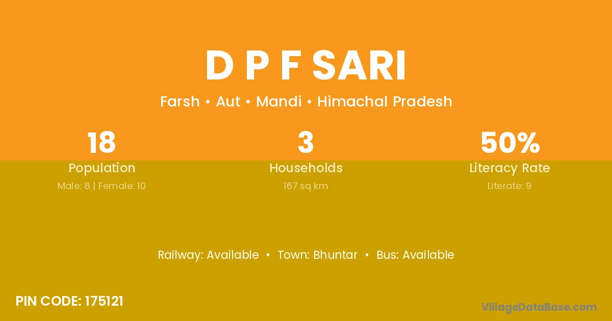 Bhuntar is the nearest town to D P F Sari village for major economic activities