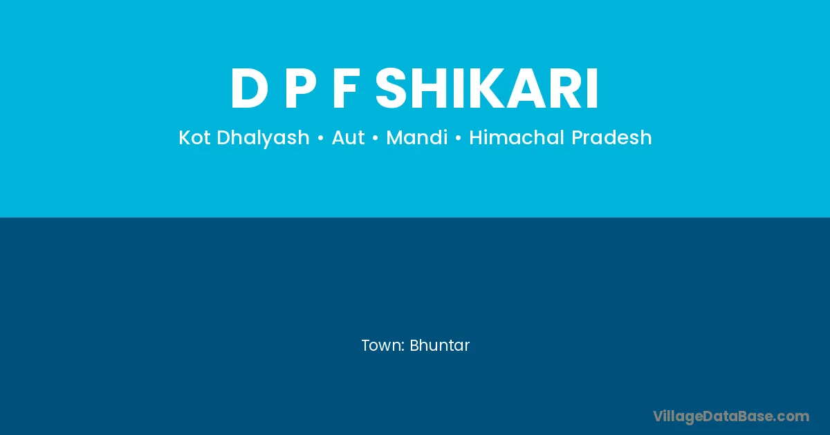 Bhuntar is the nearest town to D P F Shikari village for major economic activities