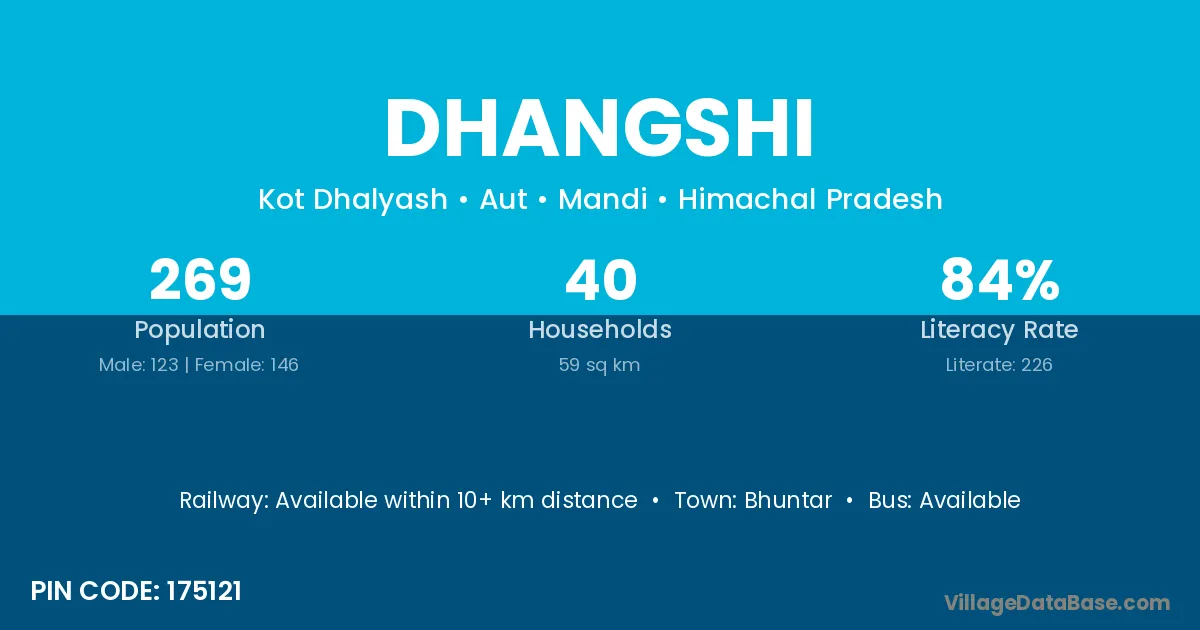 Dhangshi village has a total population of 269 people, of which 123 are males and 146 are females.