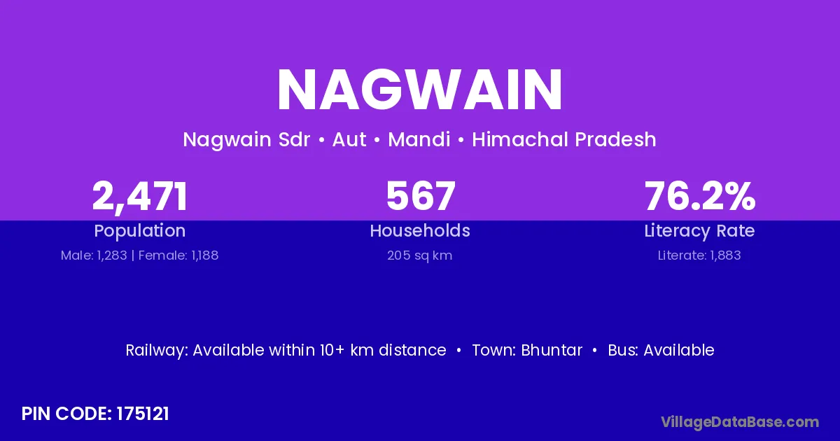 Bhuntar is the nearest town to Nagwain village for major economic activities