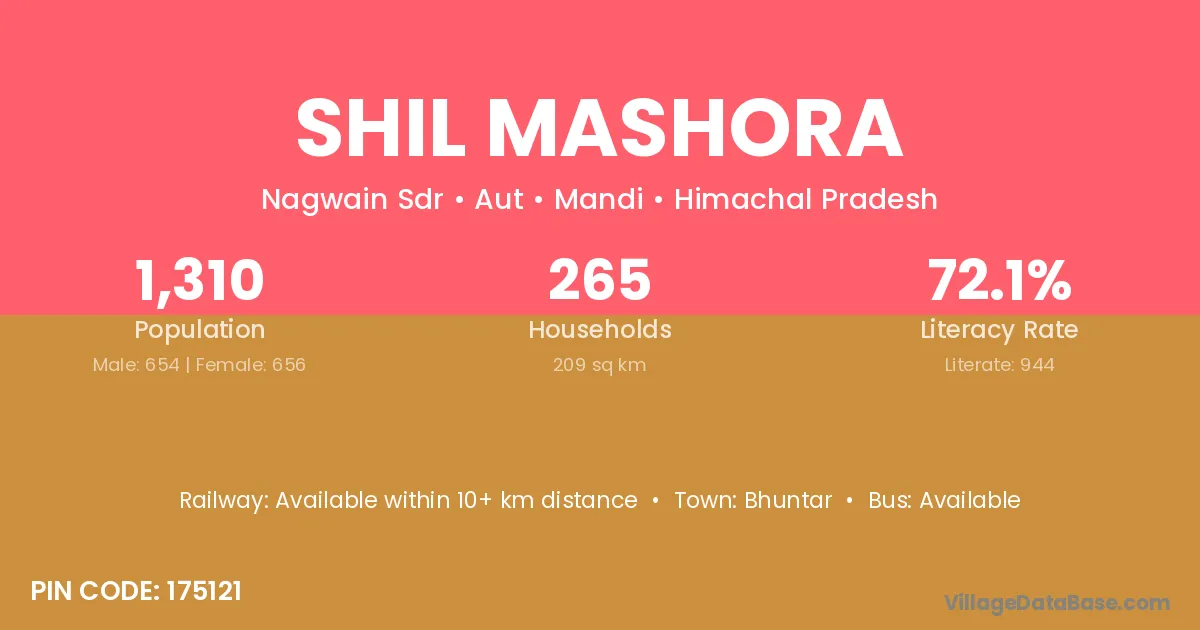 Bhuntar is the nearest town to Shil Mashora village for major economic activities