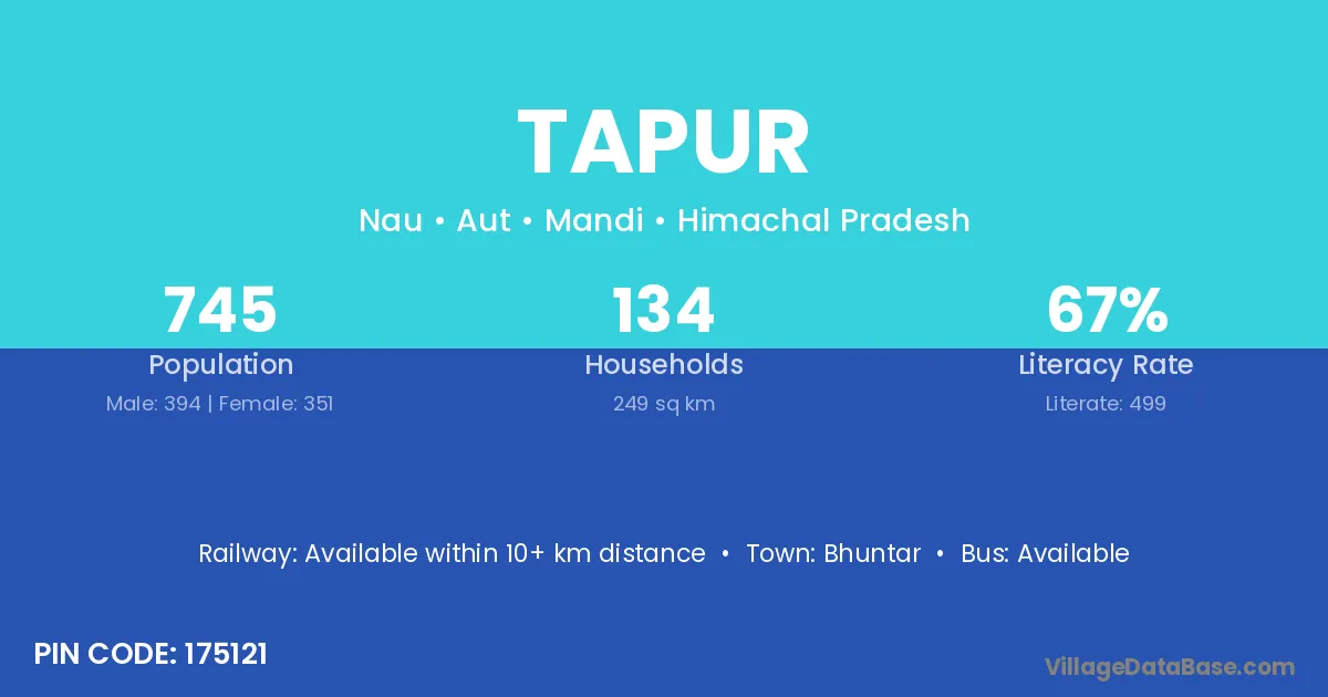 Tapur village has a total population of 745 people, of which 394 are males and 351 are females.